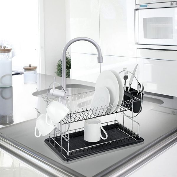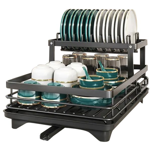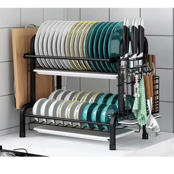 Lowest Price Cutlery Cup Kitchen Two-Layer Dish Holder Kitchen Multi Function Kitchen Dish Drying Rack$6.68