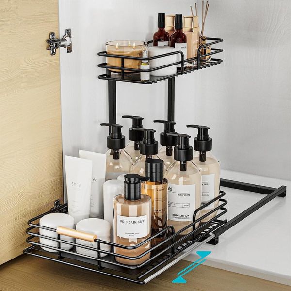 Hot Sale High Quality 2 Tire Black Under Sink Organizer Kitchen Cabinet and Storage Kitchen Counter Top Organizer Shelf Kitchen Organizer Rack$6.5