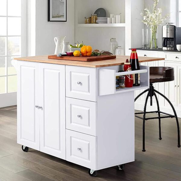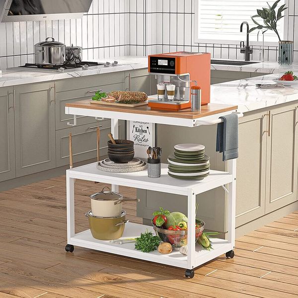 Wooden Kitchen Island with Stools New Kitchen Shelf in Trendy Vintage Style Kitchen Trolley Cart$25.5