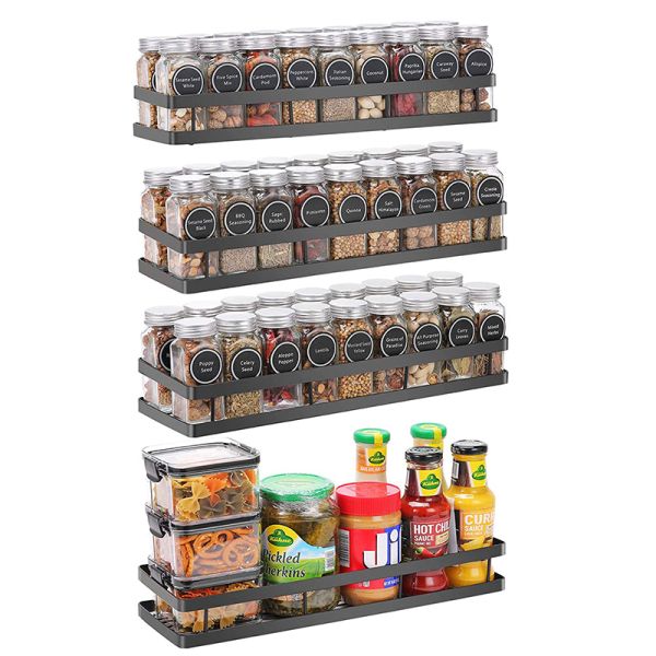 New Design Wall Mounted Kitchen Spice Metal Jar Shelf Seasoning Holder Rack for Kitchen$6.8