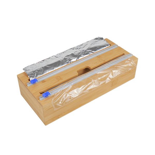 Factory Direct Supply 2 in 1 Compatible Bamboo Plastic Wrap Dispenser Foil Wrap Storage Drawers Organizer Box for Kitchen$5.4