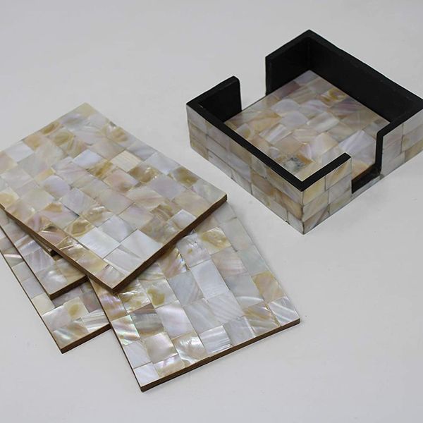 Classic Mother of Pearl Inlay Decorative Coaster Set with Holder$4.99