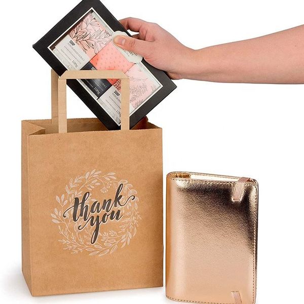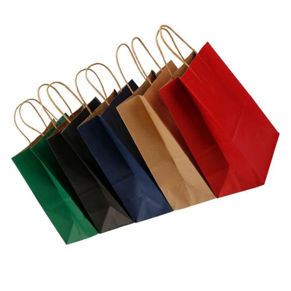 Cheap Handle Kraft Paper Bags Food Takeaway Packaging Kraft Paper Bags Custom Printing Takeout Kraft Paper Tote Bag$0.05