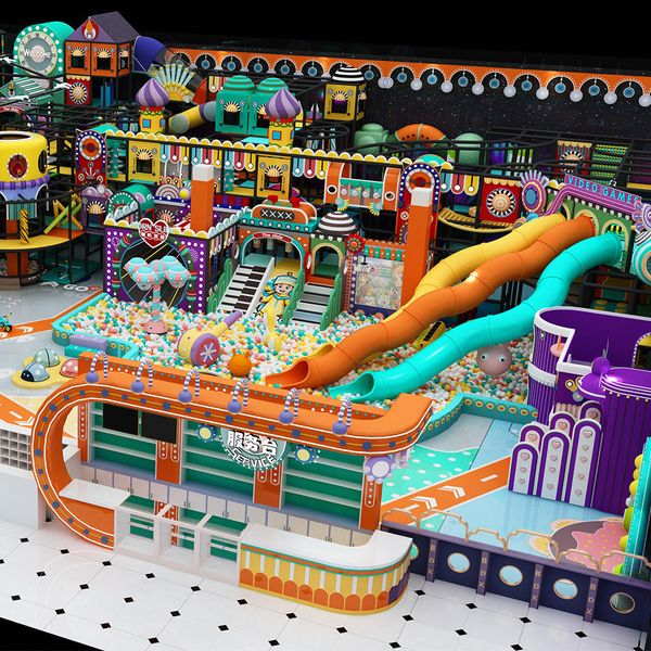 Customized High-quality Eco-friendly Indoor Amusement Park Cyberpunk Style Plastic Slide Soft Play Equipment Indoor Playground$90