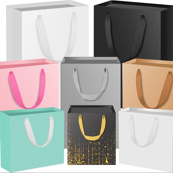 Custom Printed Paper Bag logo Shopping Clothing pink Ribbon Handle Manufacturers Kraft Paper Bag$1