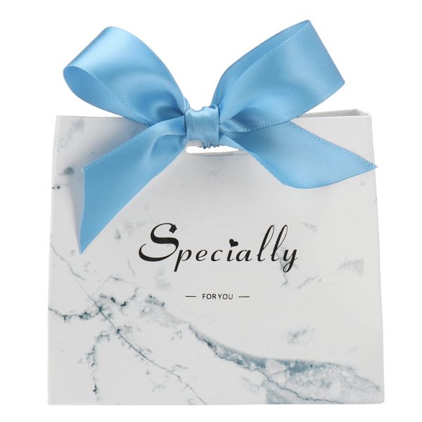 2023 Hot Sale Cute Custom Recycle White Marble Boutique Gift Shopping Marble Print Paper Bags With Blue Bow Tie$0.01