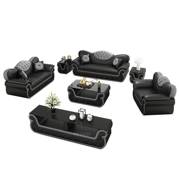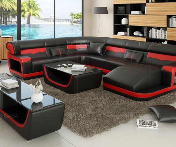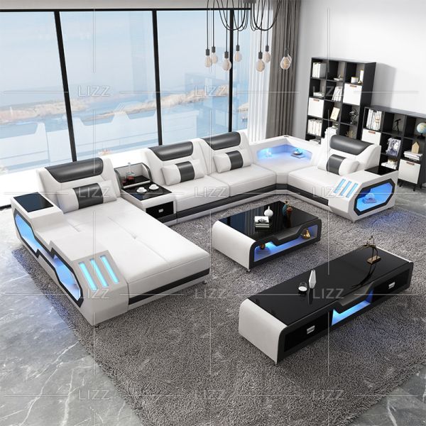 European Home Furniture Leather Upholstery Modern Living Room Leather LED Black Sofa$800