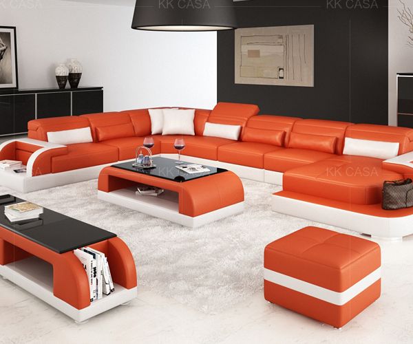 Leather Sofa Set 7 Seater Leather Living Room Furniture Orange Fashion Sofa Italian Leather Sofa$890