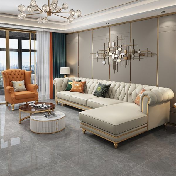 Hot Selling Modern Luxury Genuine Leather Tufted Sofa Chesterfield Style Home Furniture$800