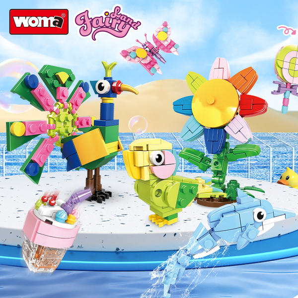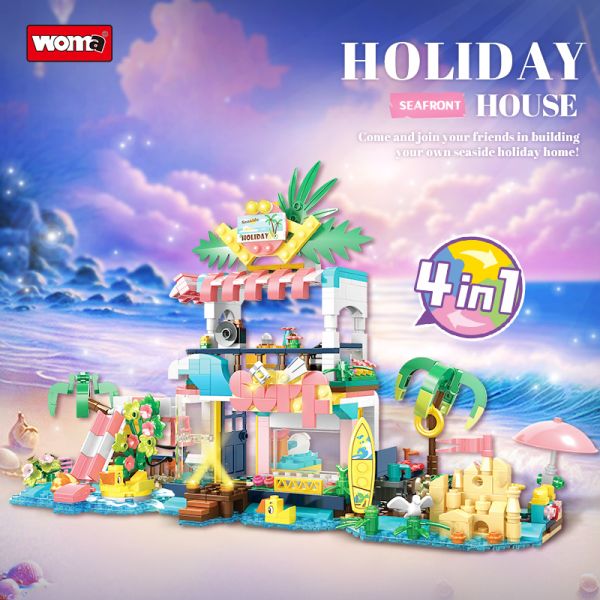 Woma Toys Factory Hottest Sale C0256 Assemble Building Blocks Set 4 in 1 Seafront Fairy House Beach Toy Educational Building Brick Set$6.55