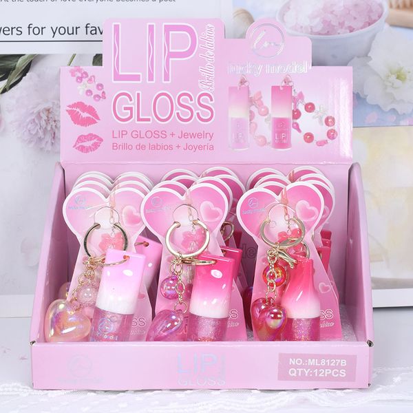 New Arrival Tendencias Maquillaje Cosmetics Bracelet Lipgloss Lip Gloss SET Liquid Lipstick with Keychain Bag Makeup Gift$0.46