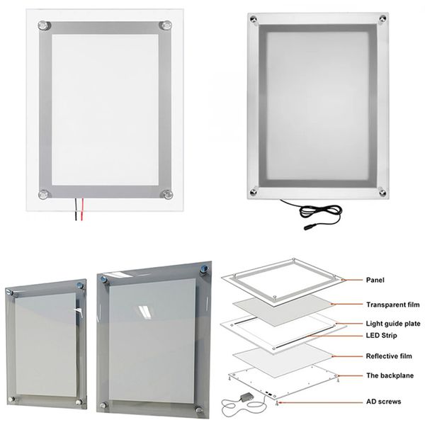 Custom A3 A4 Acrylic Wall Mounting Hanging Crystal Outdoor Illuminated Magnetic Frame Rgb Ultra Slim Waterproof Led Light Box$19