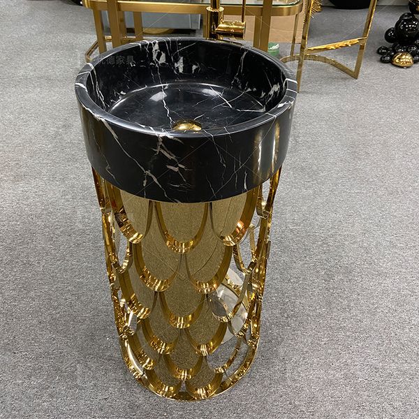Gold Bathroom Round Nature Marble Black Marble Freestanding Sink$885