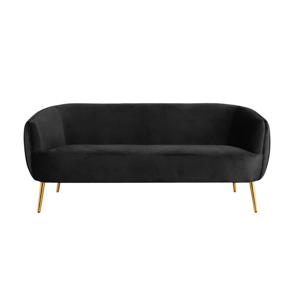 Elegant Black Velvet 3 Seater Sofa Couch with Gold Legged Design for Luxury Living Rooms$120