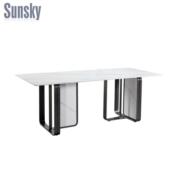 Rectangular White Marble Dining Table Set for 8 Persons with Black Iron Legs$278