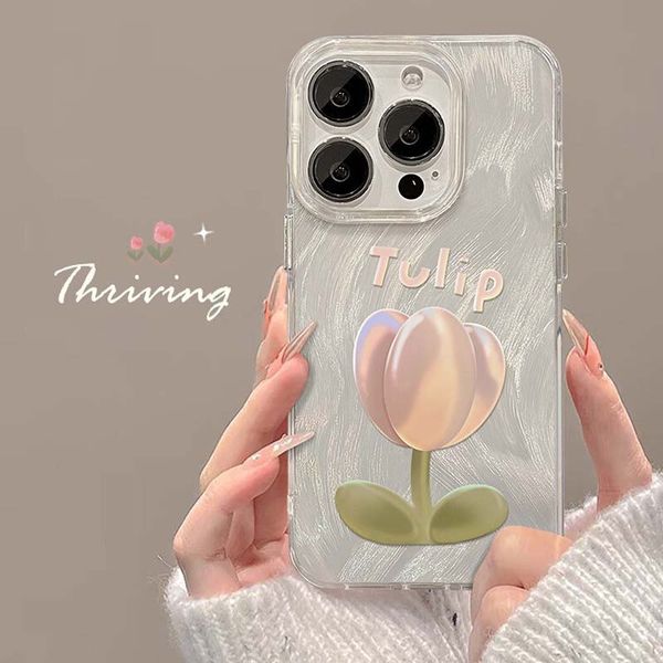 High Quality Pink Tulip Flower Camlet Style TPU Cell Mobile Phone Back Cover Case for Iphone 8 X Xr Xs 11 12 13 14 15 16 Pro Max$0.79
