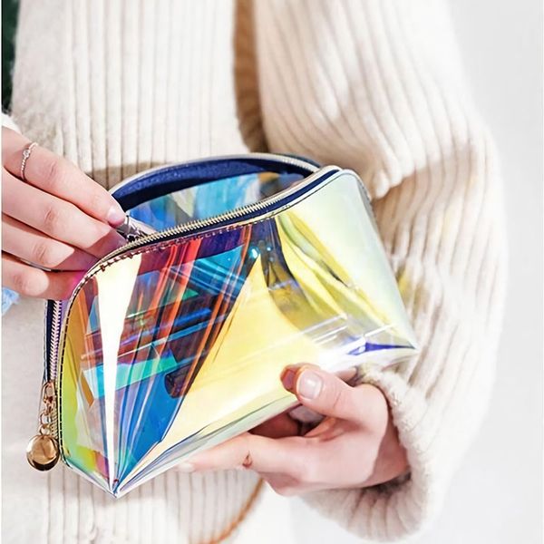 10inches Luxury Cosmetic Makeup Box with Handle Holographic Waterproof Makeup Organizer Travel Makeup Bags with Inside Mirror$8.45