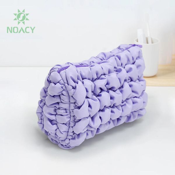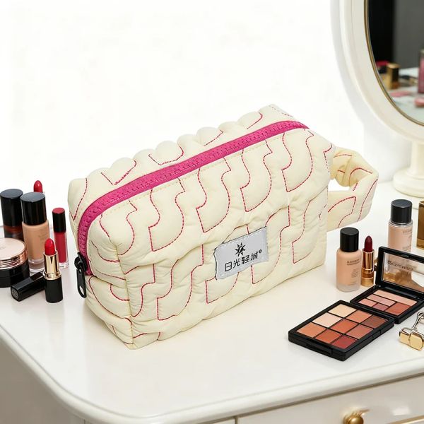 Cotton YKK Zipper Closure Cosmetic Bag Creative Quilted Puffy Make up Storage Bag Makeup Pouch$0.99