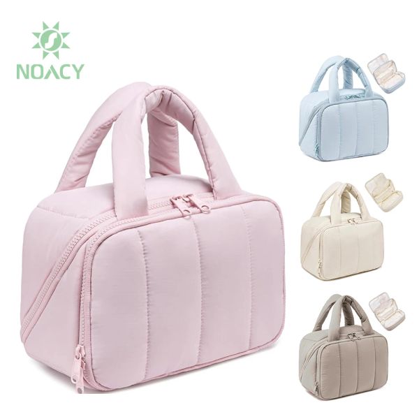 Custom Make up Bags Handle Large Pink Cosmetic Bag Travel Toiletry Puffy Makeup Bag for Women$3.29