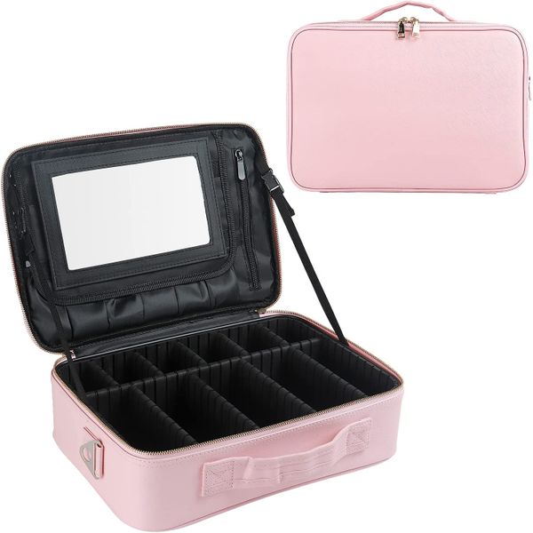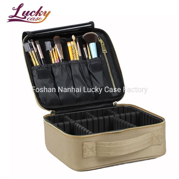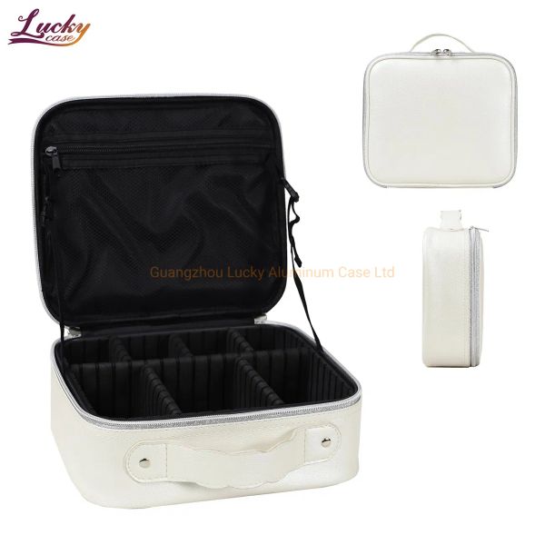 Eco Friendly Luxury Design Makeup Bags Beauty Cosmetics Make up Train case Portable Cosmetic Organizer with Adjustable Dividers$4.15