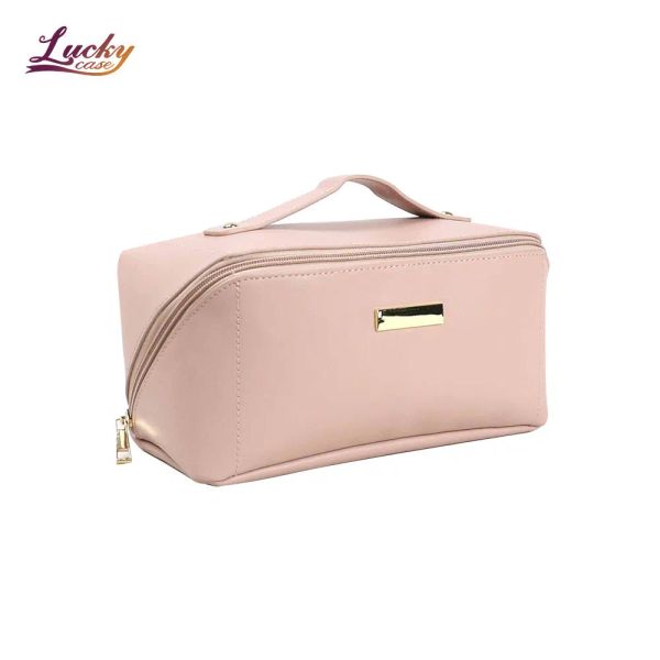 PU Leather Portable Large Cosmetic Bag Lady Makeup Bag YKK Zipper Makeup Pouch$2.4