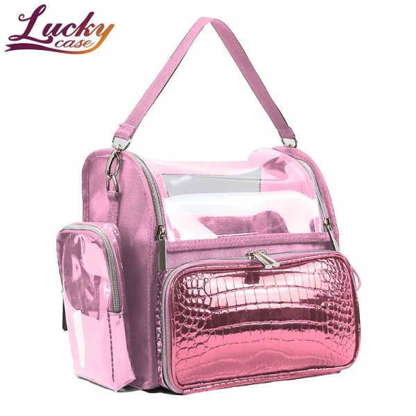 Professional Trolley Portable Makeup Bag case Led Mirror Light Mirror pink Travel Makeup case Aluminum Led Makeup case$18