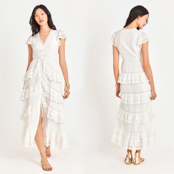 Custom Summer V Neck Casual Lantern Sleeve Lace Ladies Dress$11