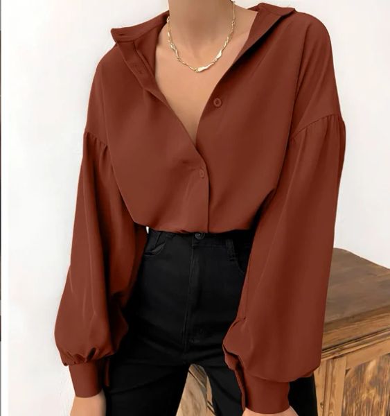 2023 Spring New French Lantern Sleeve Long-sleeved Shirt Loose Shirt Elegant Professional Women's Clothing$6.7