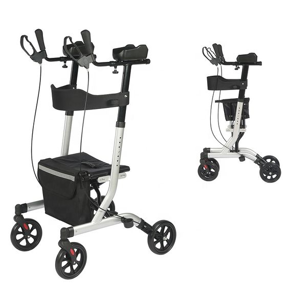 Aluminum Upright Walker Rollator Stand up Forearm Rollator With a Shopping Bag for Elderly TRA02C$49