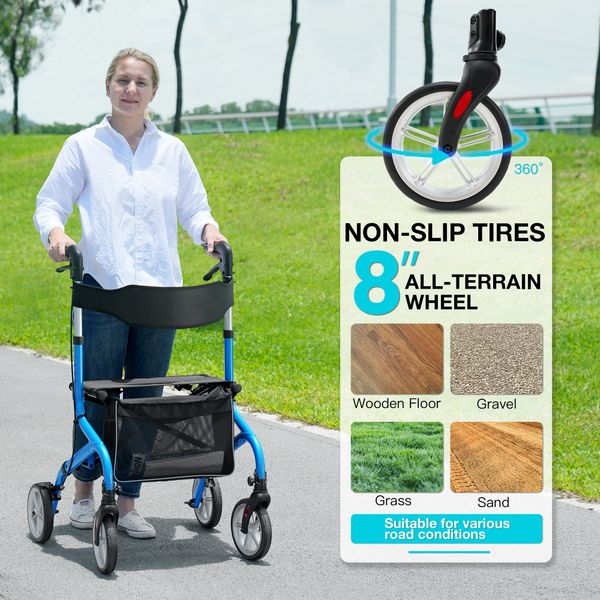 New Wholesale Outdoor Aluminum Double Folding Walker Rollator with 12 Inch Rubber Wheels TRA01M$40