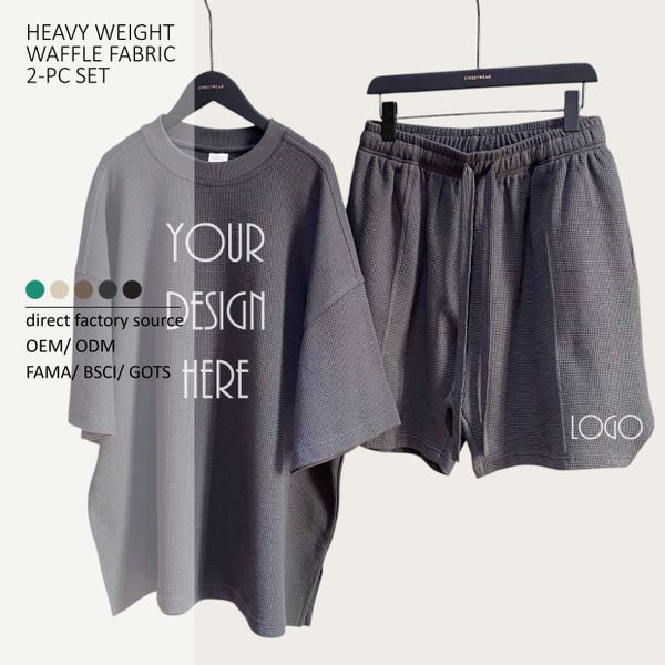 Spring-Summer 305G Heavyweight Cotton Custom T-shirts & Shorts Sets - High Street Fashion Solid Color Loose Fit Short Sleeve$6.7