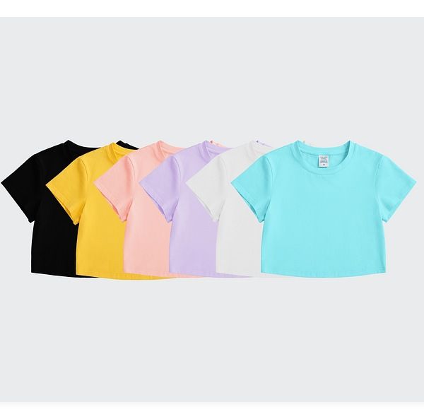 Women's Custom Logo Crop Top T-Shirt Breathable Cotton Spandex Solid White Black Casual Style Short Length Jersey Plain Dyed$6.7