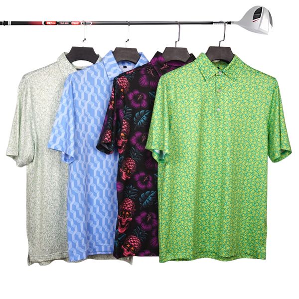 High Quality Stripped Printed Breathable Polyester Spandex Golf Short Sleeve Shirt Golf Polo Shirts$6.8
