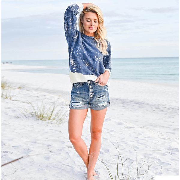 Women's Casual Loose Fit Long Sleeve Tie-Dyed T-Shirt Spring Collection Breathable Knitted Fabric Plus Size$7.1