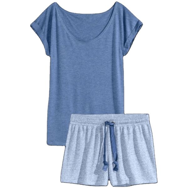 Cozy Blue Linen Viscose Pajama Set for Women Custom Woven by Factory for Spring & Summer Seasons Home Casual$7.26