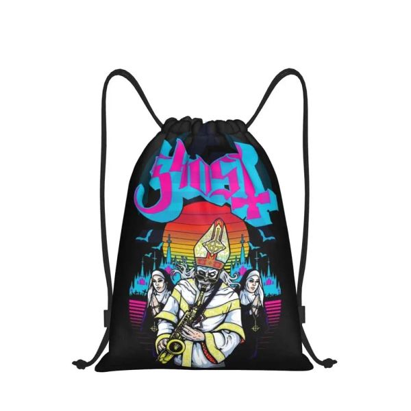 Sports Gym Sack Pack Custom Ghost Halloween Vintage Drawstring Bags for Shopping Yoga Backpacks Women Men Rock Band$0.99