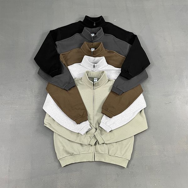 Classical Types 410g Loose Drop Shoulder Unisex Men's Inner Wear Long Sleeve T-Shirt Zip-Up Coat$17