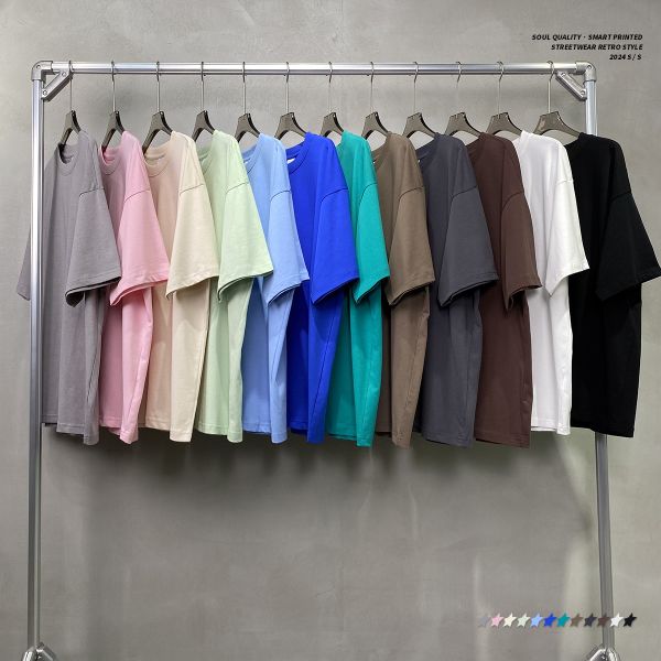 Streetwear 230g 100% Cotton Unisex Blank Custom Drop Shoulder Breathable Short Sleeve Loose T-shirt$5.5