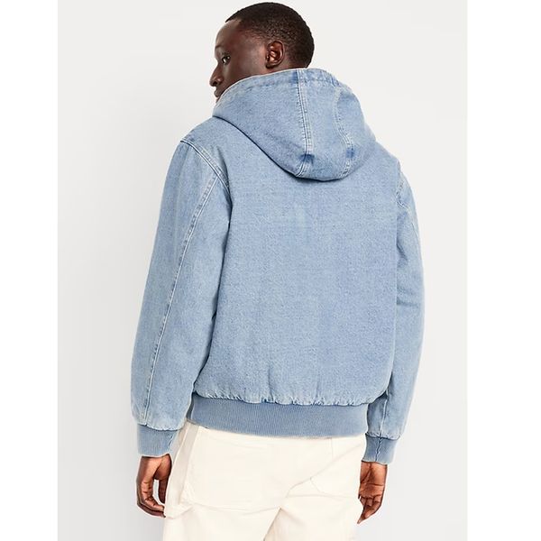 Wholesale Blank Custom Embroidery Trendy Drawstring Hood Men Light Blue Washed 100 Cotton Oversized Zip Lined Denim Hoodie$13.5
