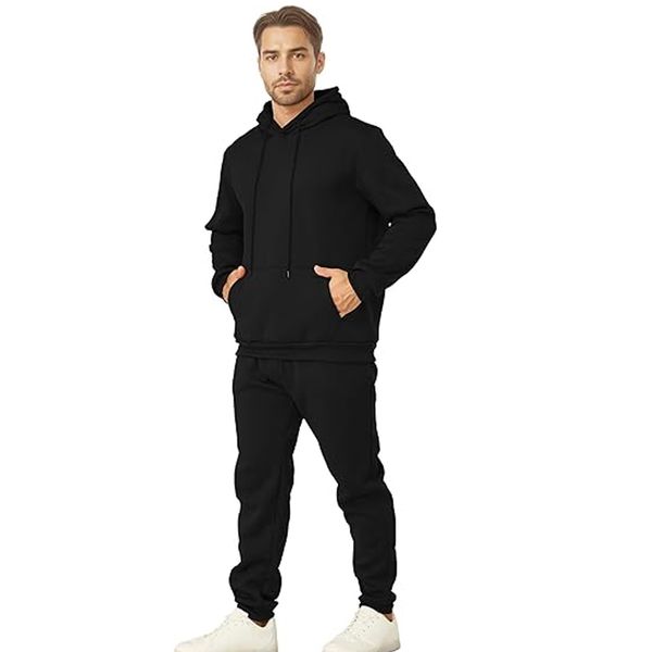 Basic Casual Fleece Winter Oversized Black Custom Silk Screen Printing Cheap Factory Sweatsuits Sweatpants Men Hoodie Set$19.9