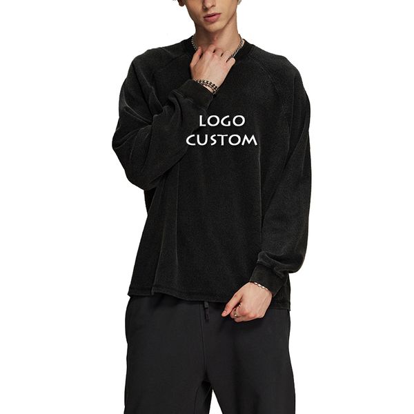 400G 100% Cotton Washed Distressed Pullover Unisex Loose Black Men Long Sleeve T-shirt Polo Shirts$12.15