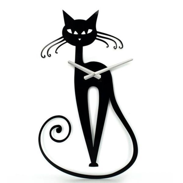 Metal Black Wall Clock Elegant Cat Shaped Wall Decoration Wall Art$5