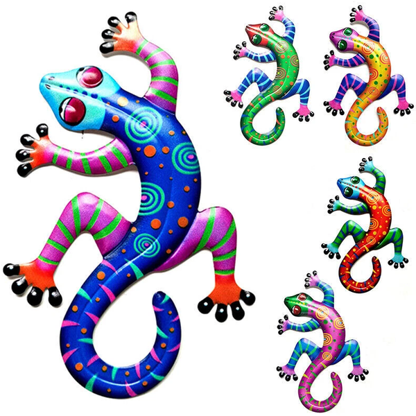 Colorful Gecko Handcrafted 3D Red Wave Vertical Metal Artwork Wall Hangings for Home Decor Modern Still Life Large$2.6