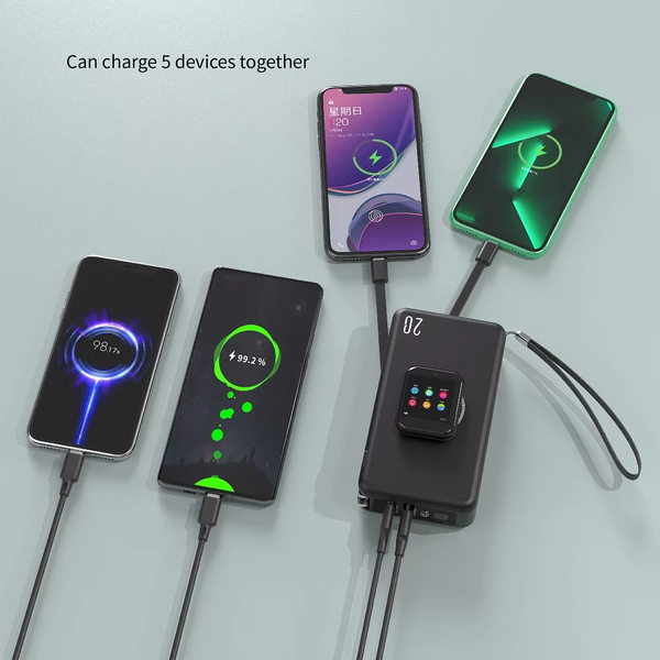 4 Built-in Cables 20W Fast Charging Power Station OEM Logo Mini Power Bank High Capacity 20000mAh Portable Charger LED Display$2.96