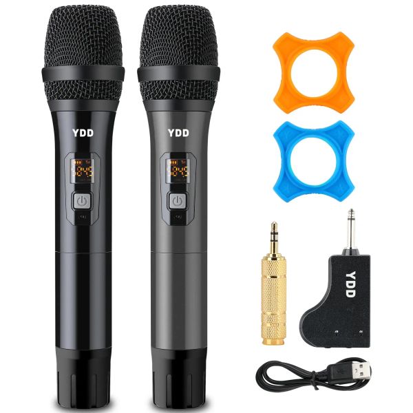 Bluetooth Wireless Microphone UHF Wireless Dual Handheld Dynamic Mic System Set with Rechargeable Receiver for Karaoke Singing Wedding DJ Party Speech Church$30