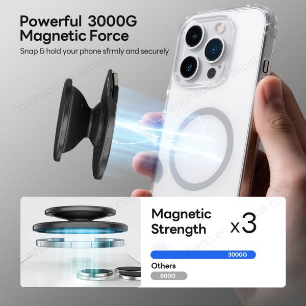 Magnetic Sticky Phone Suction Grip for M-safe Case Removable Durable Silicone Portable Mount Stand Adjustable Angle for Iphone17$2.6