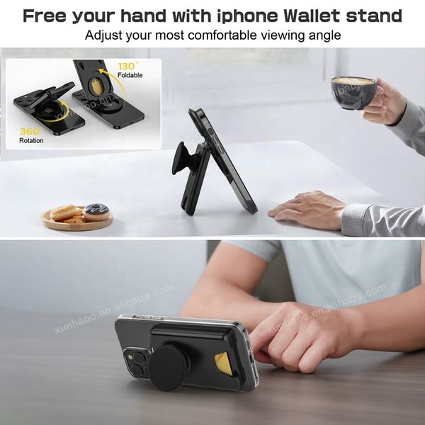 Matte Clear Wallet Magnetic Hinge Adjustable Angle Credit Card Holder Translucent Silicone Finger Grip Phone Wallets with Stand$2.85