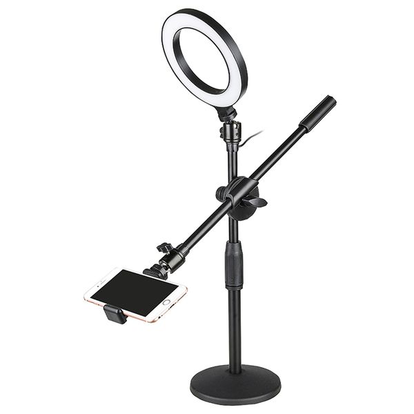 New Product Metal Desk Adjustable Height Live Streaming Video Recording Phone Stand with Ring Light and Phone Holder$7.07