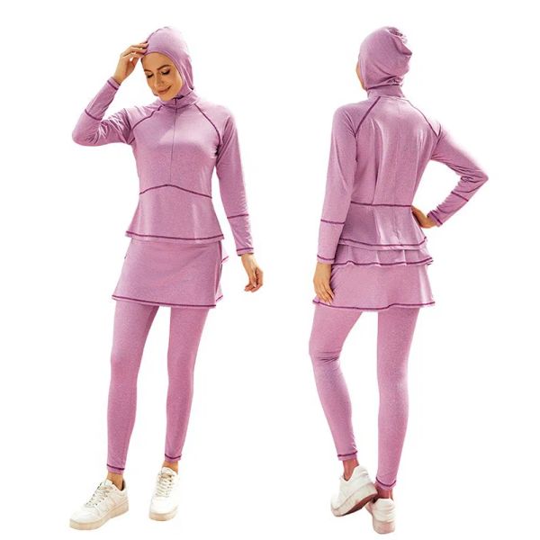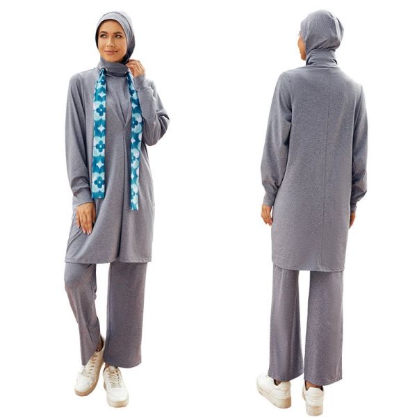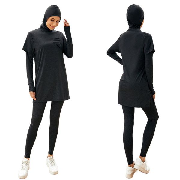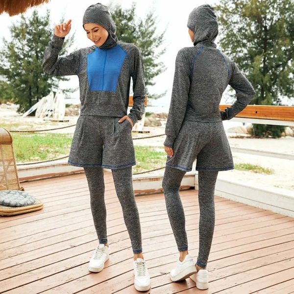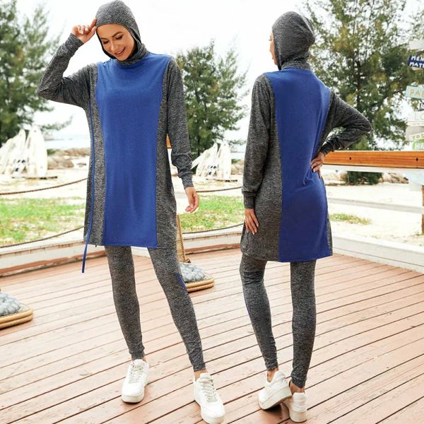 Muslim Swimwear Women Modest Patchwork Long Sleeves Sport Swimsuit 3pcs Islamic Burkinis Wear Bathing$13.35
