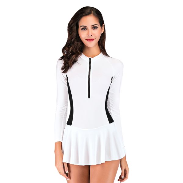 Sbart Long Sleeves Women's One-Piece Swimwear with Skirt$9.2